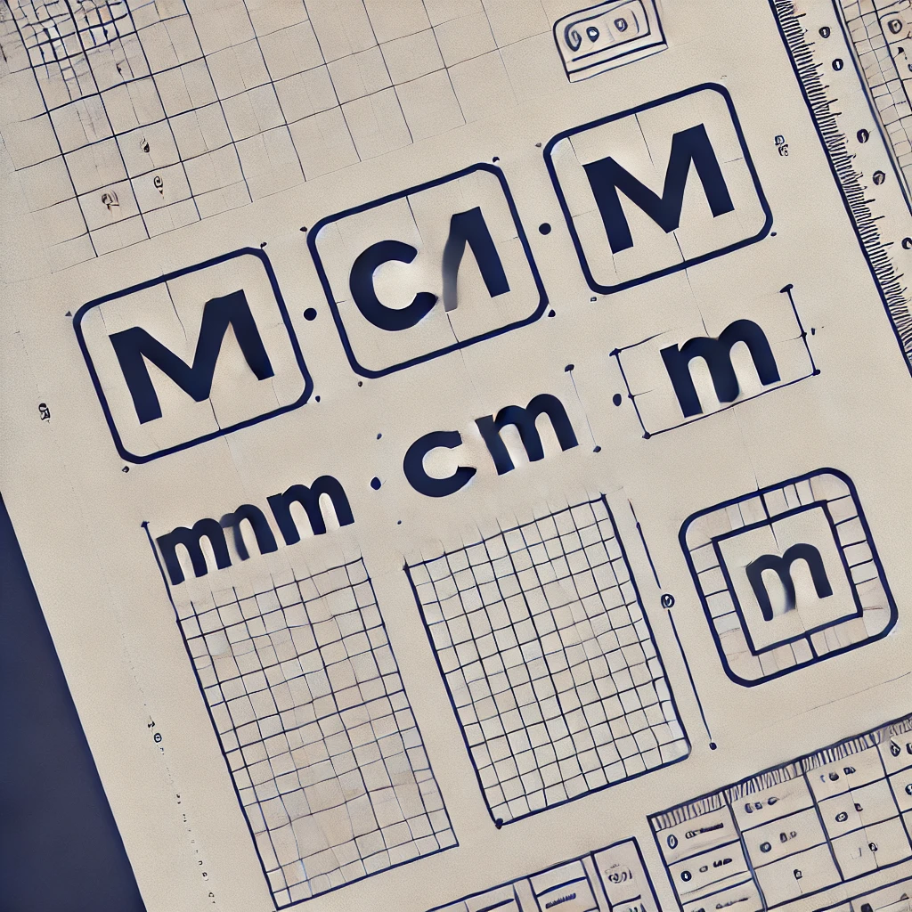 mm、mm²(ミリメートル、ヘイホーミリメートル)、cm、m、面積、土地とか壁とかの計測につかってください。